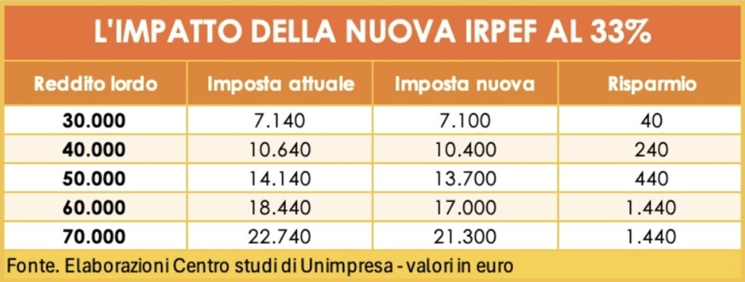 A seguire un’immagine dell’impatto della nuova Irpef al 33%: